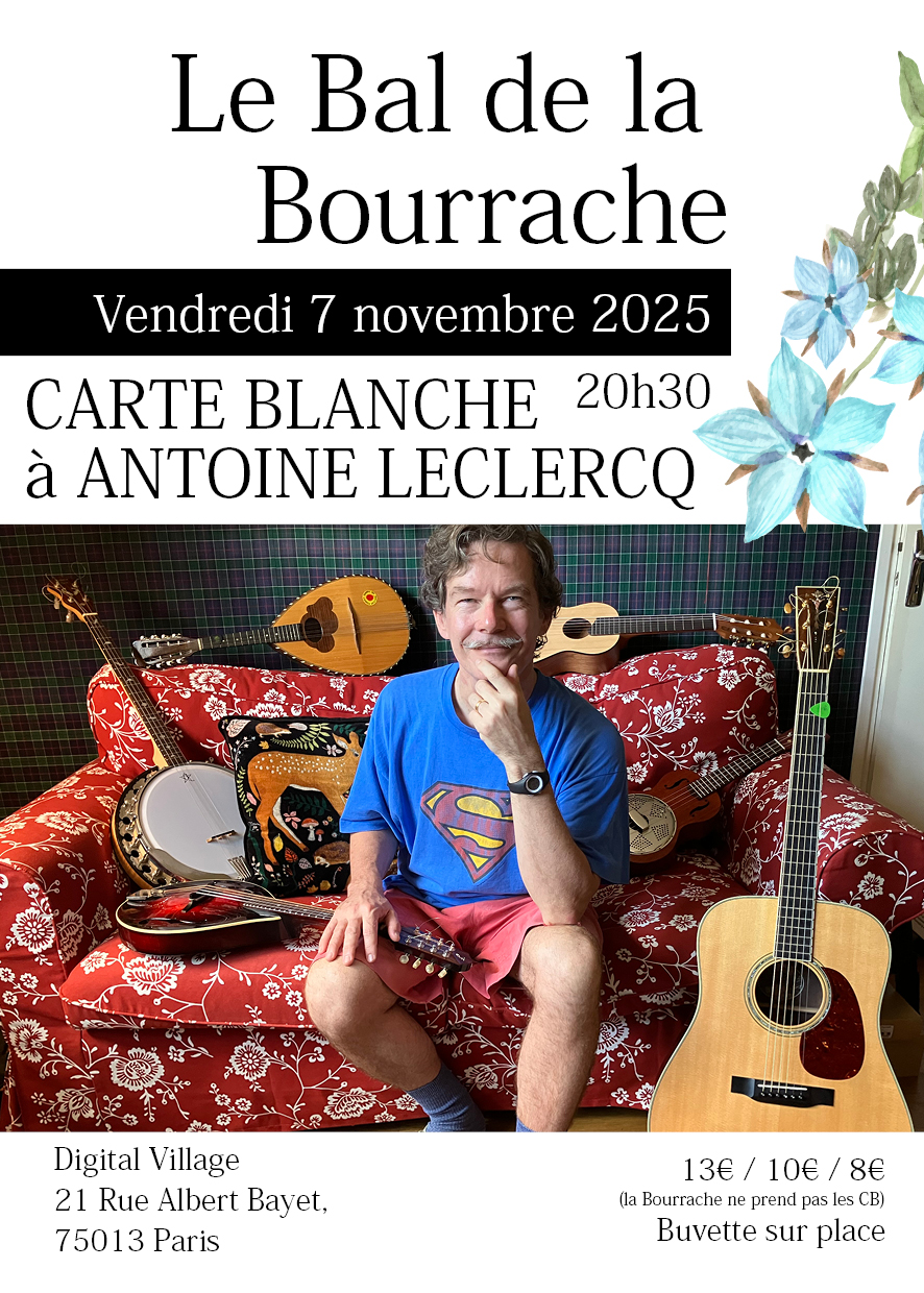 - (bal) Paris 13ème, Digital Village, 21 rue Albert Bayet, 20h30: bal scène ouverte à Antoine Leclercq (affiche) (info)