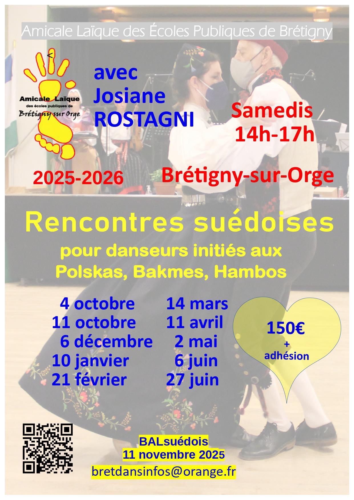 - (bal) Brétigny/Orge (91), gymnase Camille Hébert, allée des Martyrs irlandais, 14h30-17h30: bal suédois des stagiaires, des intervenants et du spelmanslag de Brétigny