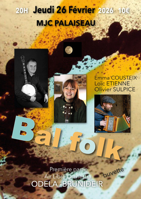 - (bal) Palaiseau (91), MJC, parc de l'Hotel de Ville, du 23 au 27 février: bal Auvergne avec Loic Etienne, Olivier Sulpice, Emma Cousteix (affiche)