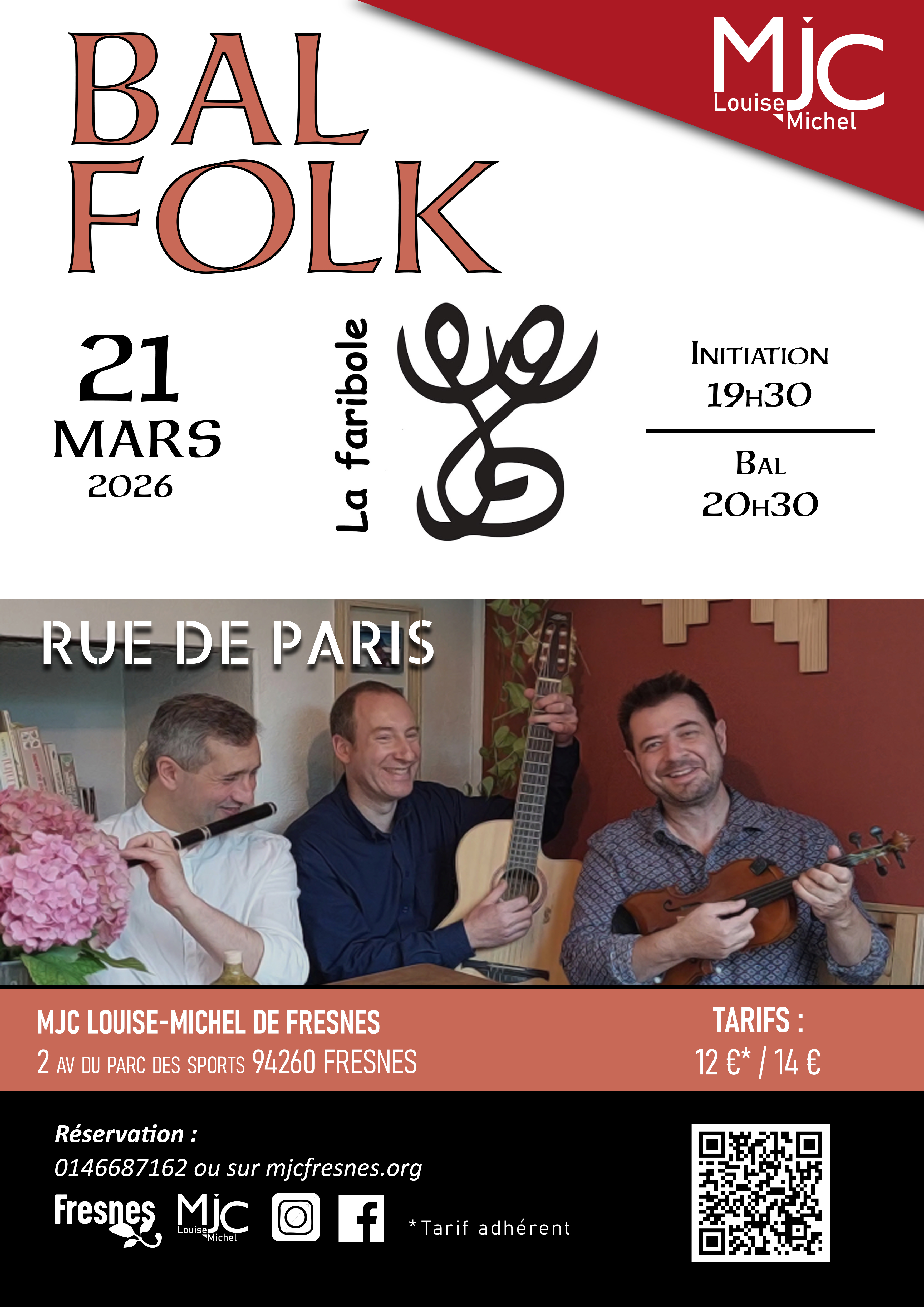 - (bal) Fresnes (94), MJC Louise Michel 2 avenue du Parc des Sports, 20h: bal avec Rue de Paris et la Faribole (info) 14/12 EUR