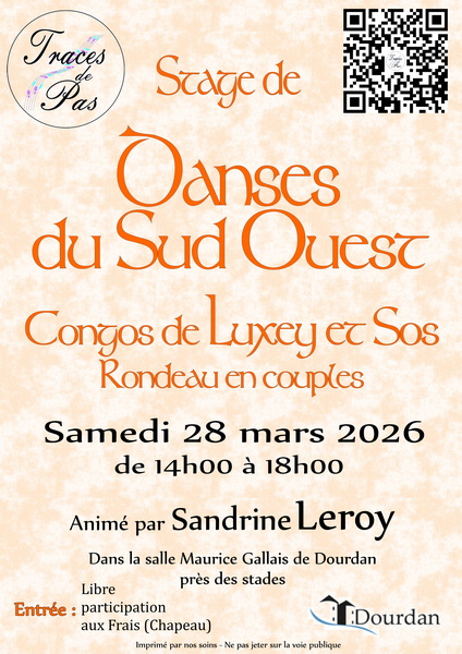 - (stage) Versailles (78), Maison de quartier de Porchefontaine, 86 rue Yves Le Coz, salle 16, 17h-19h: congo de Captieux, par Claire 12/10 EUR ou 170/136/51 EUR (Reservation) (info)