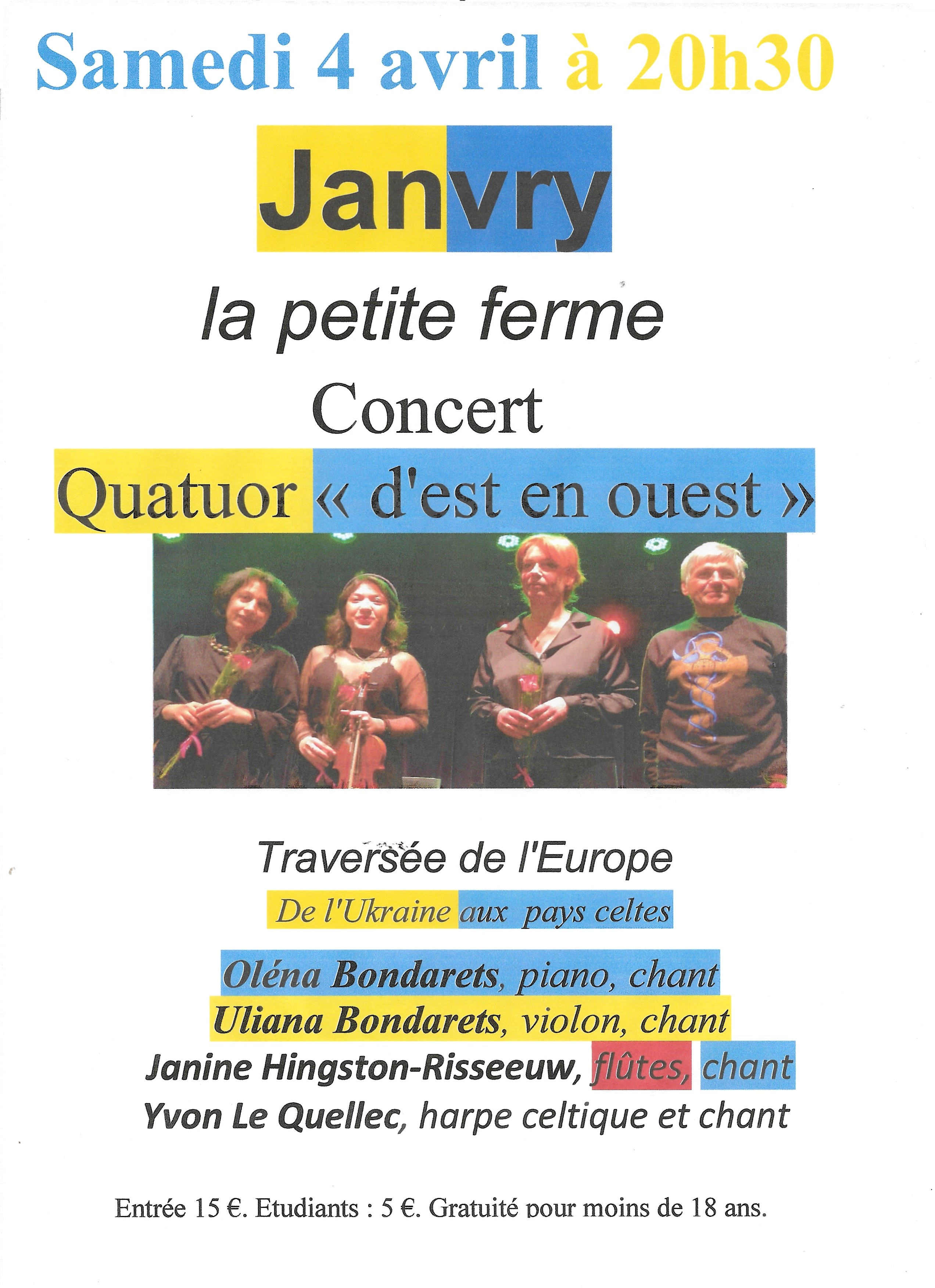- (concert) Janvry (91), La petite ferme, 20h30: concert Quatuor d'Est en Ouest (info)