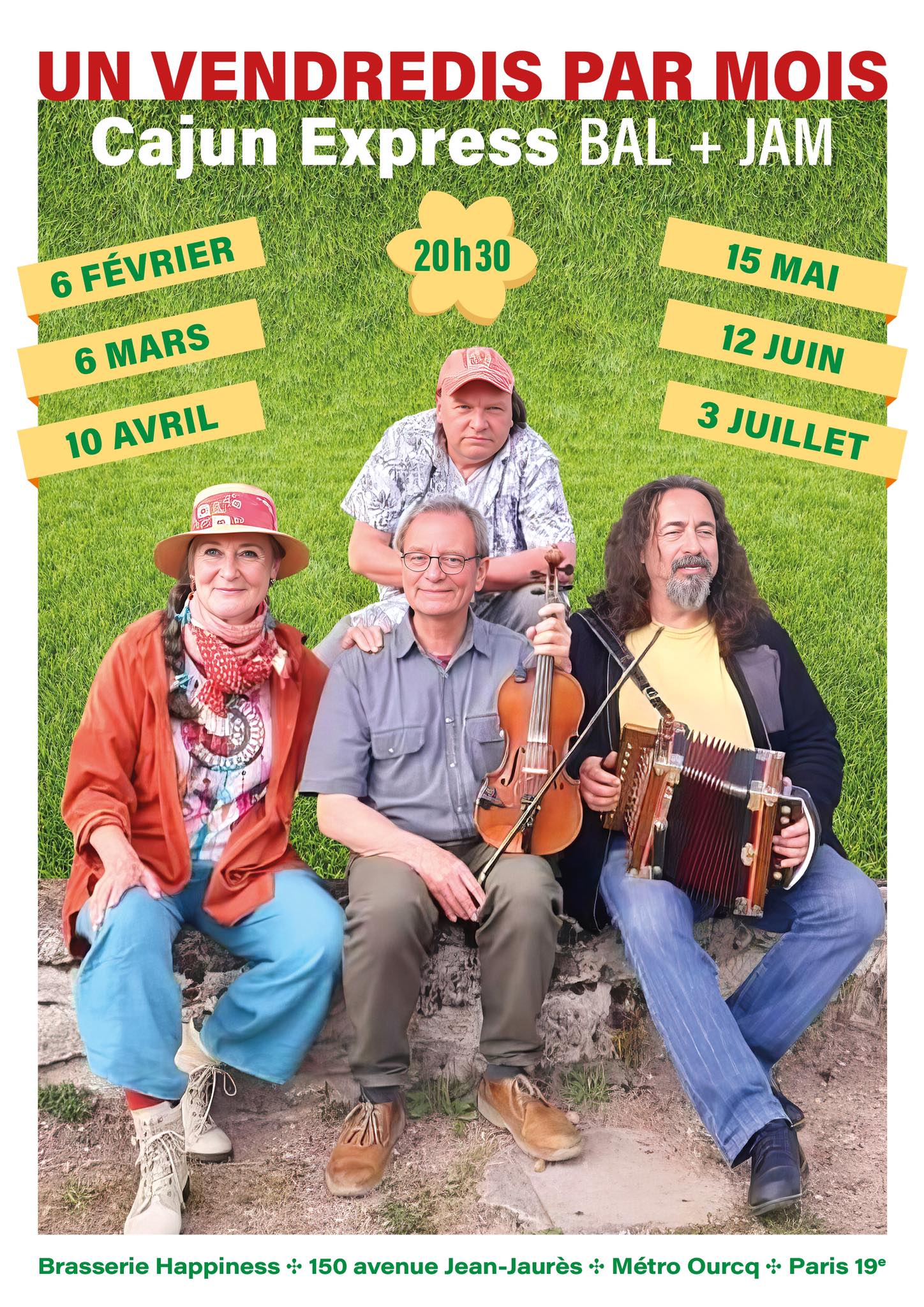 - (concert) Paris 19ème, brasserie Hapiness, 150 avenue Jean Jaurès, 20h30: bal jam-session cajun (info)