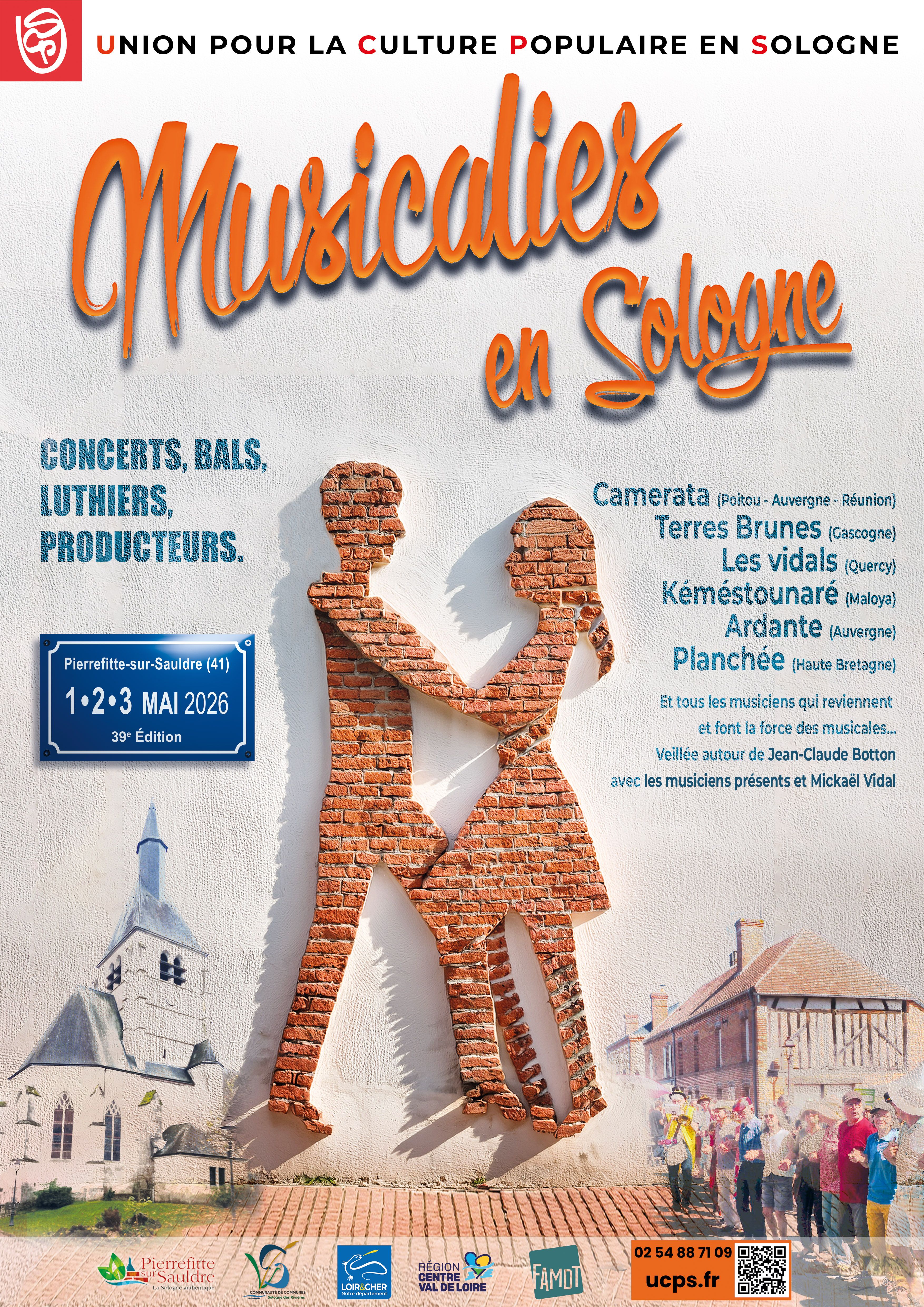 - (bal) Pierrefitte sur Sauldre (41), jusqu'au dimanche 3 mai: les Musicalies: Camerata, Terres brunes (Gascogne), Les vidals (Quercy), Ardante (Auvergne), Planchée (Haute-Bretagne), etc. (affiche) (info) (reservation)